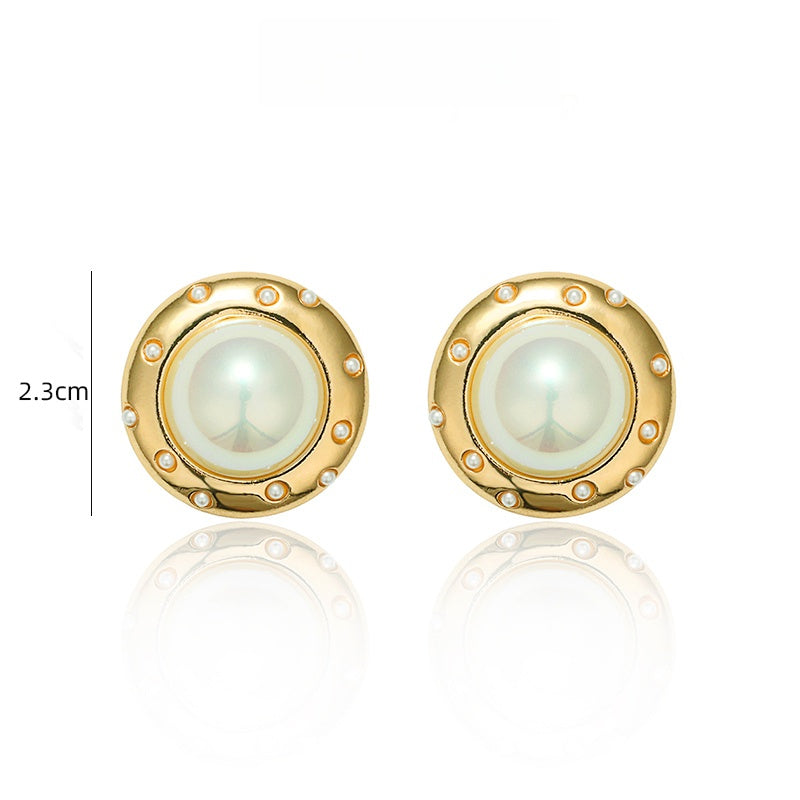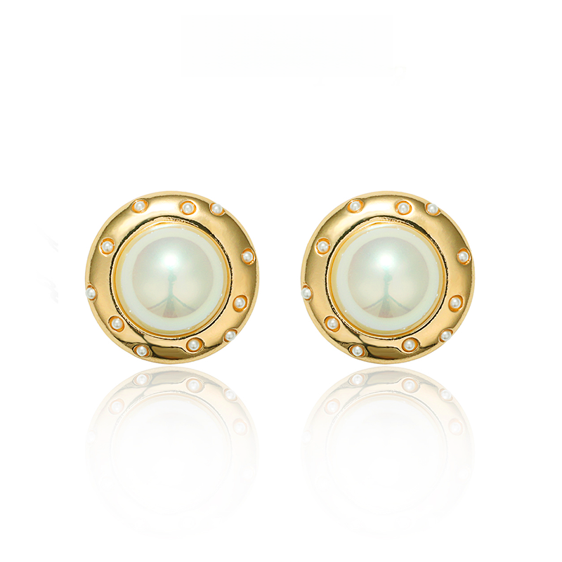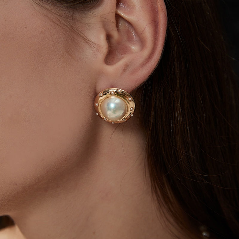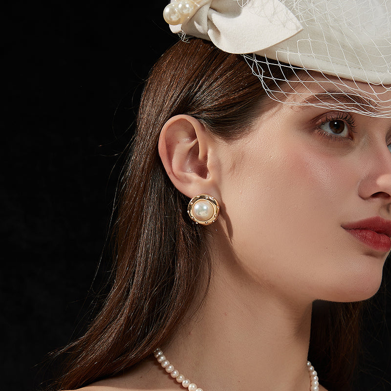 丸みを帯びたフレームに、優美な模造真珠が輝く。ゴールドのメタルが高級感を引き立て、耳元に典雅な存在感を与える。角度によって変化する光沢が、どのシーンでも上品な輝きを演出します。