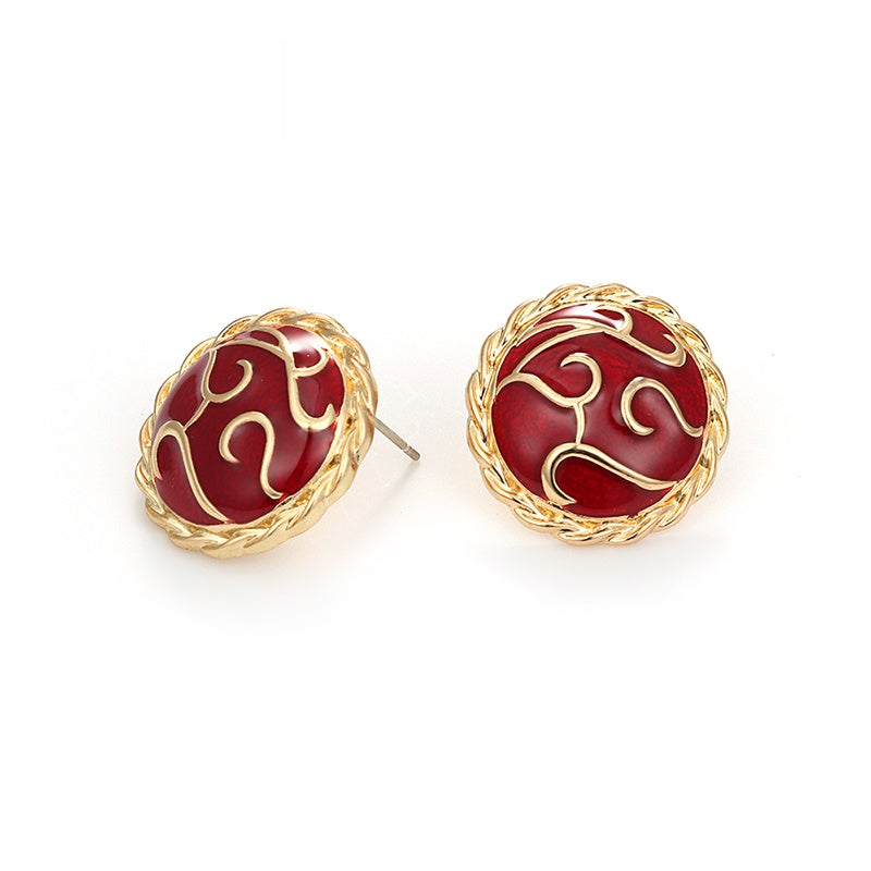 赤い彩釉と金のラインが織りなす立体的なデザイン。 伝統的なモチーフが力強さとエレガンスを併せ持ち、顔まわりに存在感と洗練された輝きを添える。角度によって異なる光沢を放ち、どの瞬間も印象的に演出します。