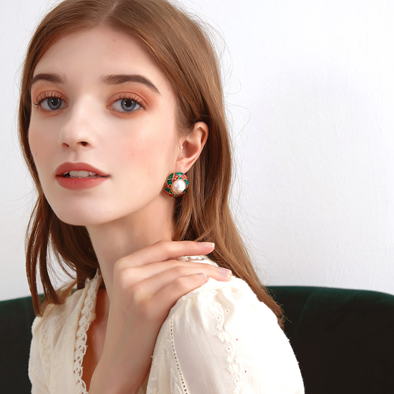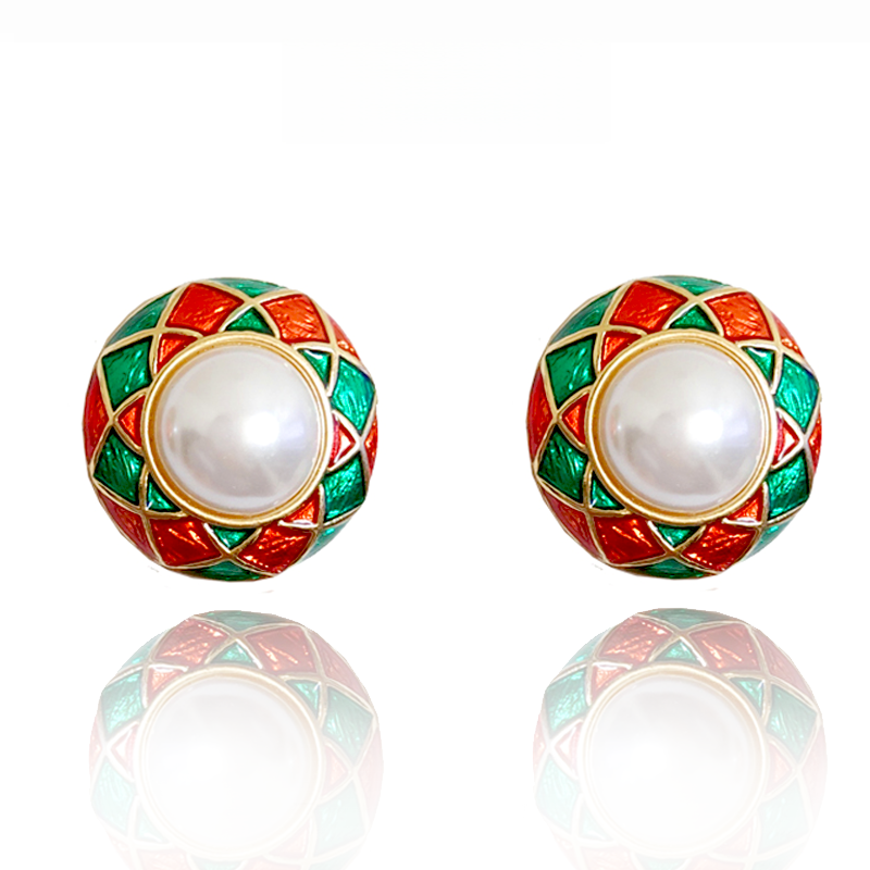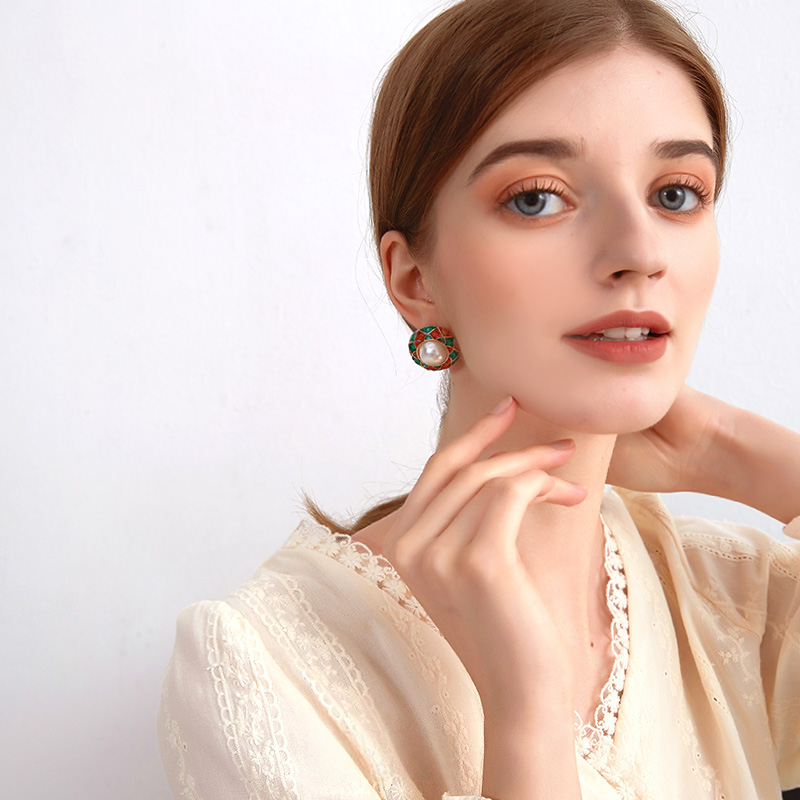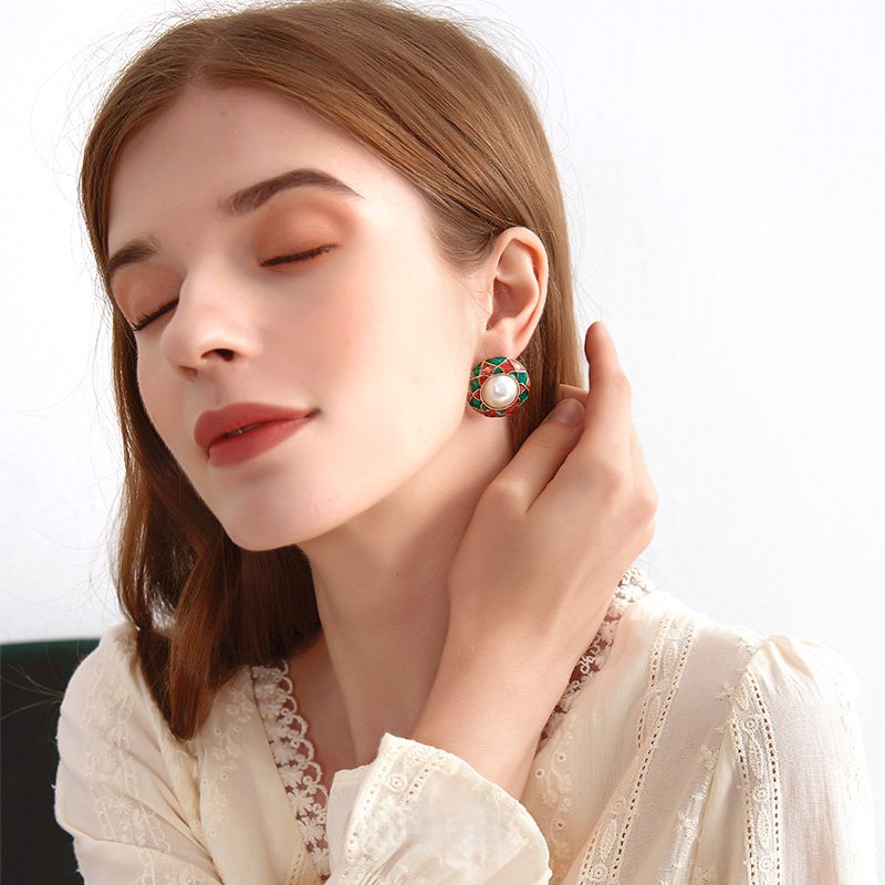 素材:模造真珠 + 合金 + 彩釉 + s925銀針/合金イヤークリップ